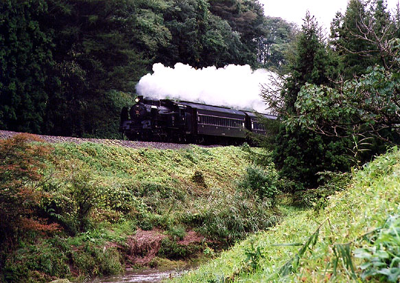 小川に沿った坂道をSLがグイグイ行きます。