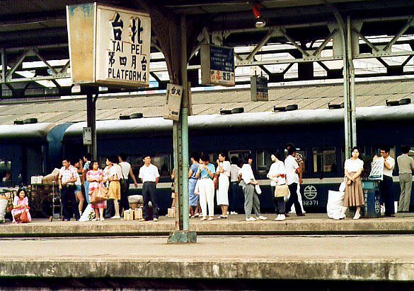 「台北 TAIPEI」という大きな駅名表示の下に、「第四月台」の表示。