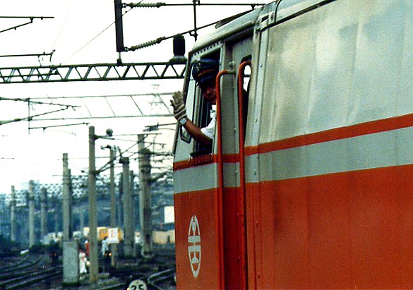 走り去る呂光号の機関士さんが、手で合図をしてくれました。